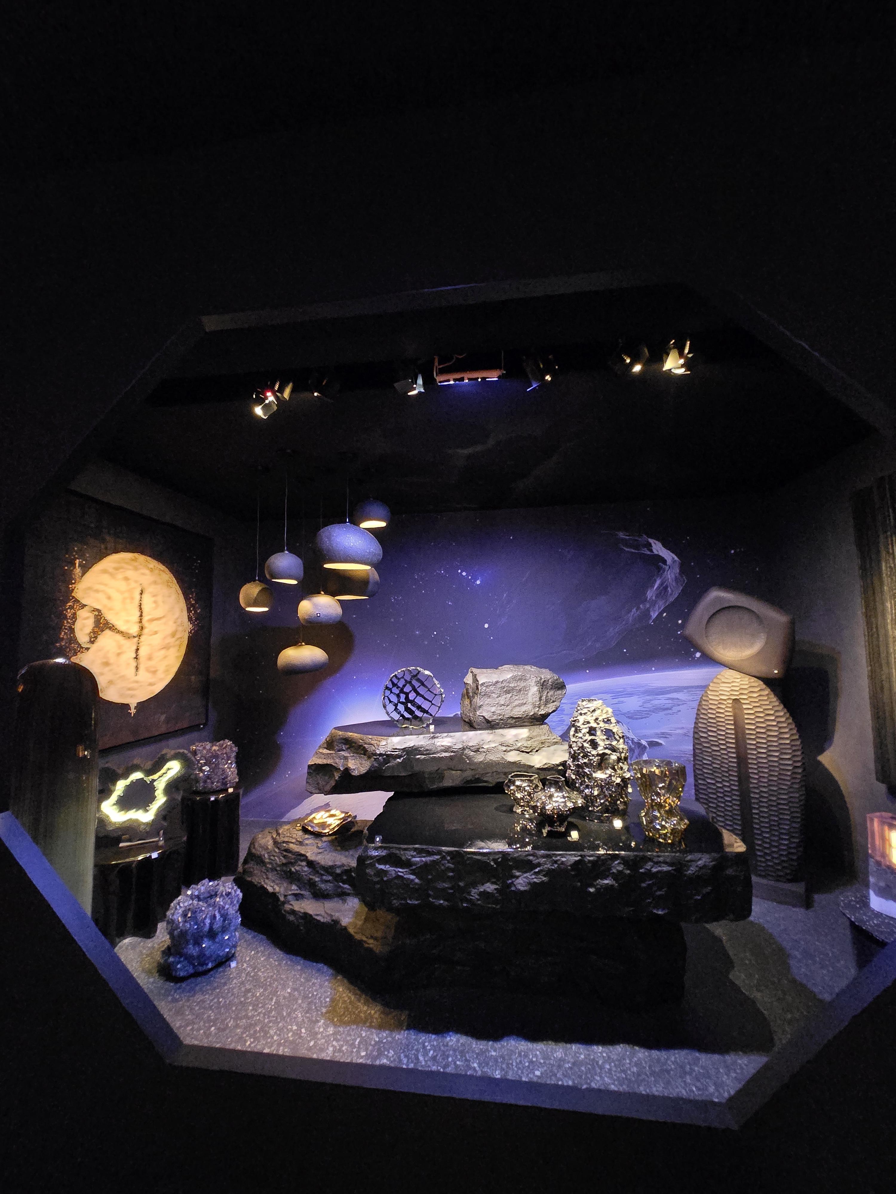 우주 배경을 모티브로 가구, 조명, 오브제 등을 감각적으로 인테리어 해놓았다